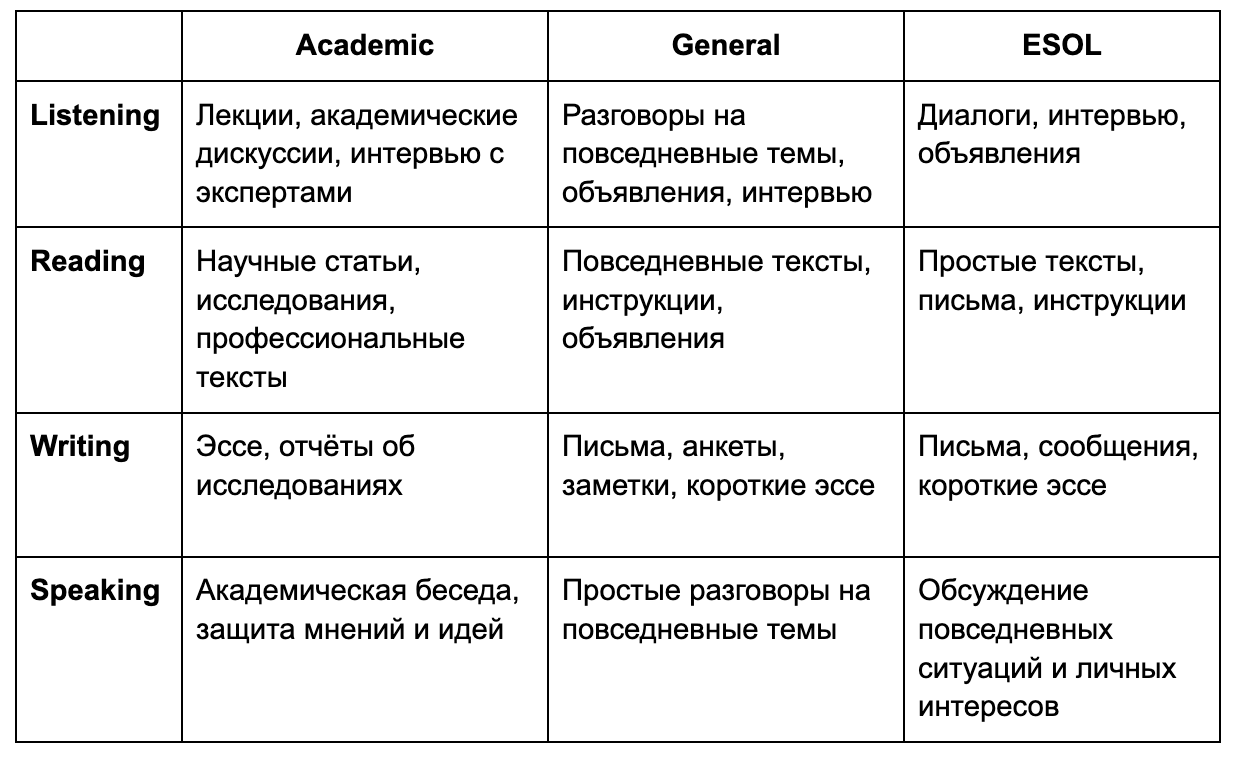 General предназначен для оценки навыков использования языка в бытовых ситуациях;
