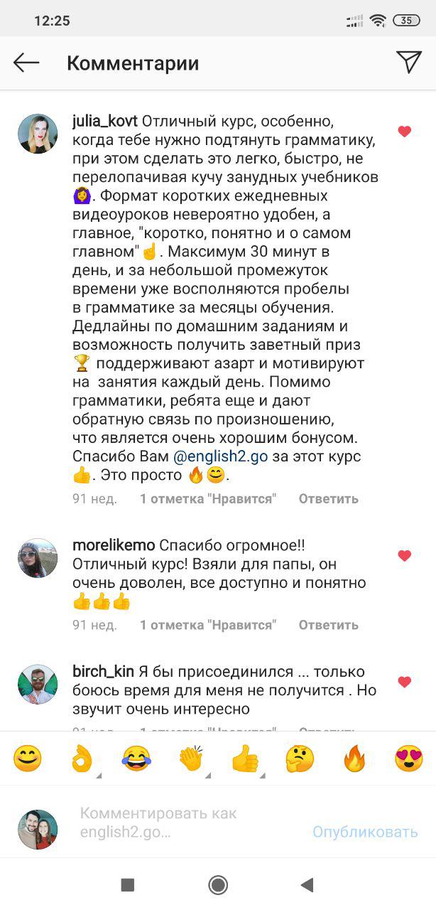 Спасибо за интенсив, реально приучаете заниматься английским каждый день. Сначала было непривычно каждый день уделять время языку, а теперь втянулся. Объясняете всё доступно и понятно, ничего лишнего. Буду участвовать в следующих обязательно!